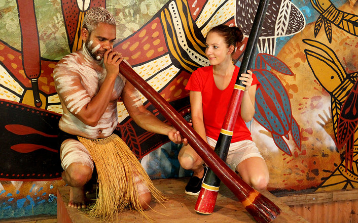 The award winning Pamagirri Aboriginal Experience stands out for its dedication to preserving and sharing diverse stories of Indigenous culture. Including the Pamagirri Aboriginal Dance show in a rainforest amphitheatre, a Dreamtime Walk, showcasing hunting techniques such as spear and boomerang throwing, then watch the guide play the didgeridoo.